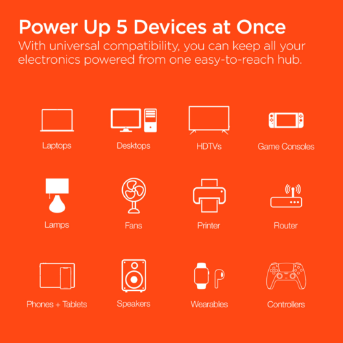 - Power 5 Devices at Once